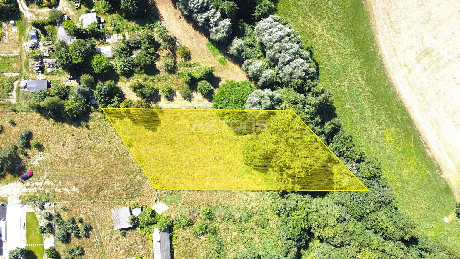 Część działki przeznaczona pod zabudowę została zaznaczona na jednym ze zdjęć.